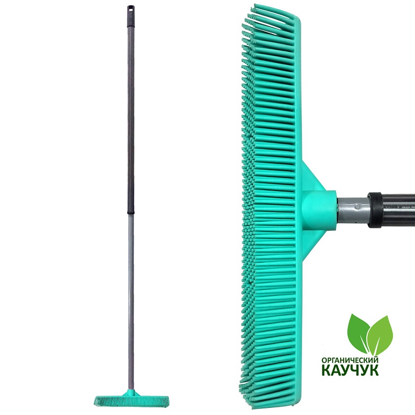 Классическая резиновая щетка для пола экобренда Грант Натур из органического каучука. Телескопическая ручка, легко очищающаяся резиновая щетина и скребок для сгона жидкости и грязи. Походит для уличной и комнатной уборки.
