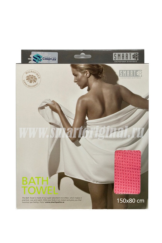 Полотенце банное вафельное шведской компании SMART изготовлено из рассеченного микроволокна. Полотенце способно эффективно впитывать воду, загрязнения и микро¬организмы, производя лёгкий пилинг, отшелушивая ороговевшие клетки эпителия и выполняя массаж. Быстро просушивает тело и волосы при выходе из ванной, бассейна или душа. Рекомендуется пользоваться полотенцем в фитнес-центрах, на пляже, в семьях, где есть маленькие дети. Применение высоких технологий позволило соткать из микрорезанного микроволокна уникальную ткань вафельной структуры. Неоднородность вафельной поверхности создает перепад давления на кожу, что приводит к усилению микроциркуляции крови и лимфы. Полотенце банное вафельное мгновенно впитает влагу, предохранив тело от переохлаждения. Полотенце можно использовать для профилактики и предотвращения кожных заболеваний — оно обладает всеми свойствами микроволокна компании SMART, то есть впитывает, втягивает внутрь структуры ткани различные загрязнения и болезнетворные бактерии.