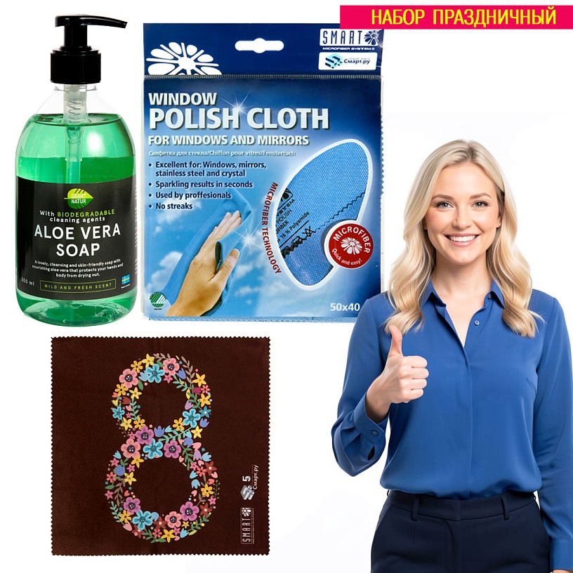 В преддверии 8 марта мы создали комплект, который редко дарят, но всегда хотят получить. «Набор Праздничный №7» — это эстетика функциональности. Здесь нет бесполезных сувениров, которые пылятся на полке. Только высокоточные инструменты для ухода за домом и собой, разработанные шведской компанией SMART MICROFIBER SYSTEM и экобрендом «Грант Натур».